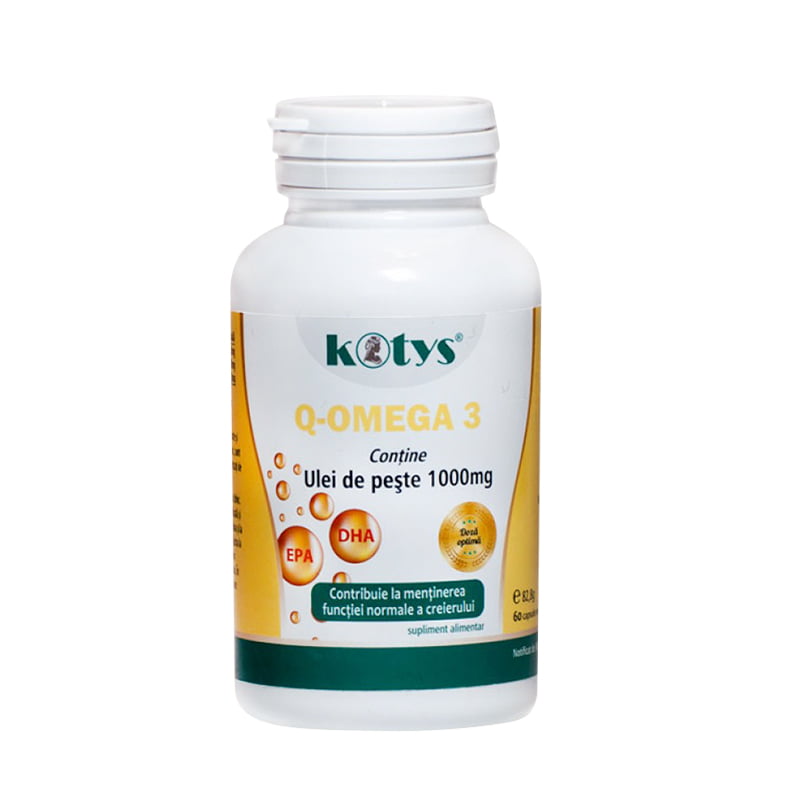 Q-Omega 3 1000mg, 60 cmp, Kotys – Supliment alimentar ce contribuie la mentinerea functiei normale a creierului si la buna functionare a inimii.